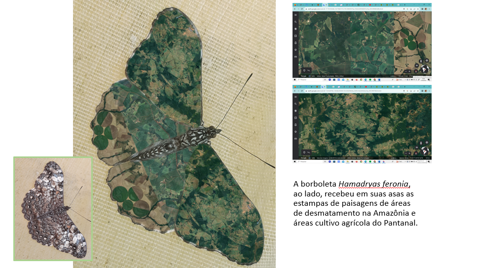Sinopse: A exposição “Asas da paisagem” traz nove fotografias de borboletas e mariposas tropicais registradas na região da Serra do Japi, em Jundiaí, São Paulo. A artista visual, Sílvia Guadagnini, doutoranda artes visuais na Universidade Estadual de Campinas (Unicamp) e professora universitária, utilizou as fotografias para criar intervenções nas estampas das asas desses insetos substituindo partes das asas por imagens de satélite de locais no Brasil que sofreram os efeitos das mudanças climáticas extremas ou tiveram profundas alterações na paisagem causadas pela ação humana.