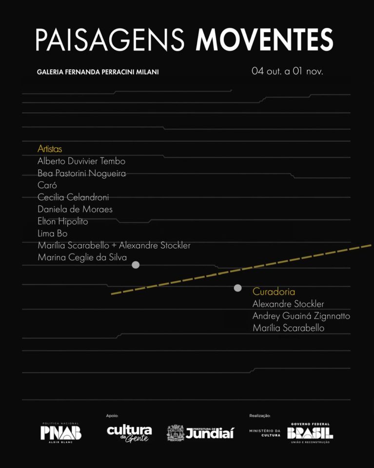 A mostra contará com artistas de Jundiaí, interior paulista e São Paulo, como Alberto Duvivier Tembo, Bea Pastorini Nogueira, Caró, Cecília Celandroni, Daniela de Moraes, Elton Hipolito, Lima Bo, Marina Ceglie da Silva. A seleção foi realizada através de edital público, com curadoria de Alexandre Stockler, Andrey Guaianá Zignnatto e Marília Scarabello, que valorizou propostas capazes de ampliar os questionamentos sobre a paisagem, a partir de diferentes linguagens artísticas.