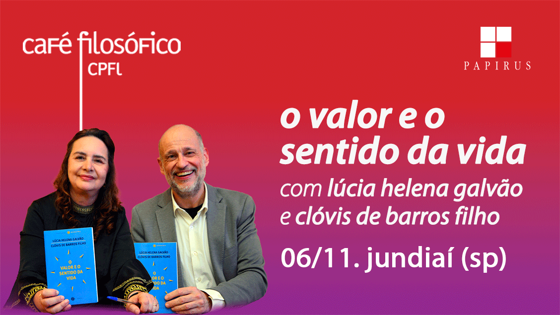 Sinopse: “Que tipo de ser humano você quer ser?” Com essa provocação que exige olhar para dentro, identificar valores essenciais e, muitas vezes, confrontar incoerências entre crenças e atitudes, Lúcia Helena Galvão e Clóvis de Barros Filho dão início a um diálogo inspirado no livro O valor e o sentido da vida, obra que vai embasar um bate-papo dos autores com o público de Jundiaí, no módulo especial do Café Filosófico CPFL, em parceria com a Papirus Editora.