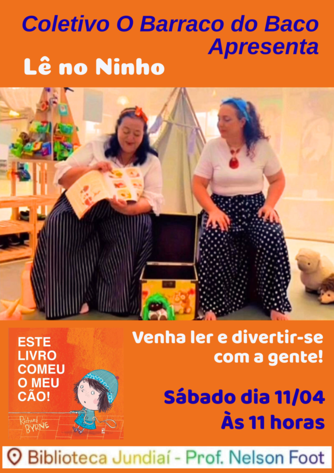 O livro escolhido para o mês de Abril: “ESTE LIVRO COMEU O MEU CÃO!” do autor Richard Byrne. Bella passeia com seu cão, Bolota, quando ele é “comido” pela dobra do livro. Ao tentarem ajudar, outros personagens e veículos (Beto, polícia, bombeiros) também desaparecem. Quem ajudará a solucionar o mistério? Inteligentemente utilizando-se da fisicalidade do livro, esta obra é: criativa, engenhosa e diversão pura para os pequenos leitores. Trabalhando lateralidade, direita, esquerda e dimensões de espaço é uma aventura tátil e inesquecível. Mais do que uma história, é um convite a interatividade transformando o livro em um objeto brincante que vai muito além do texto.