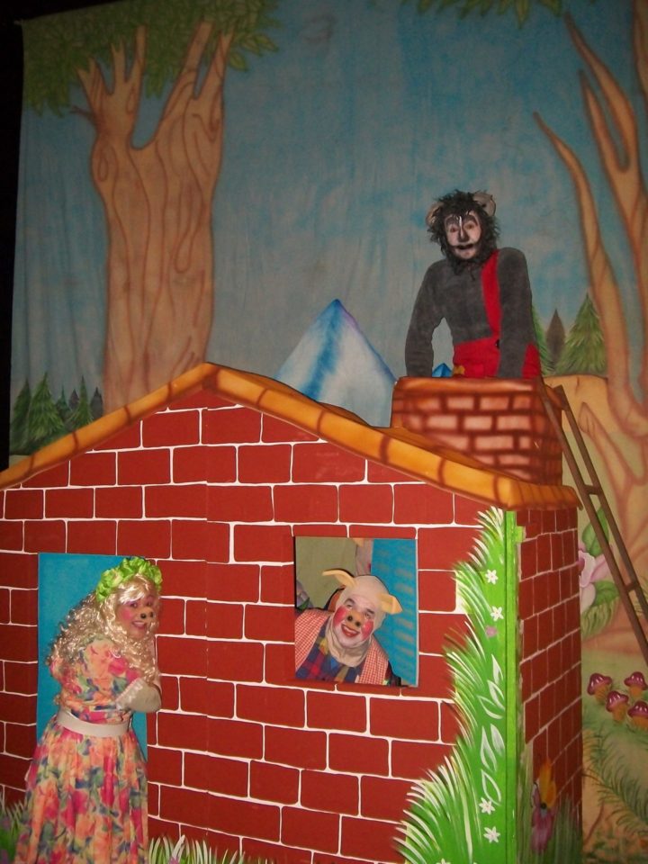 A história é contada de forma parecida com o conto clássico: os três porquinhos constroem suas casas, e o lobo tenta derrubá-las até encontrar uma casa forte o suficiente para resistir. O Lobo: Aqui, ele continua sendo esperto, como na versão tradicional, mas de uma maneira bem engraçada. Nessa montagem, ele acaba sendo um pouco atrapalhado, o que faz as crianças rirem bastante. Ele não assusta ninguém, pelo contrário, acaba conquistando o carinho do público. O espetáculo tem um estilo de Circo Teatro, onde a diversão é garantida, mas sem perder a mensagem importante do conto: “A união da família é muito importante” e “Devemos cuidar da nossa segurança”.