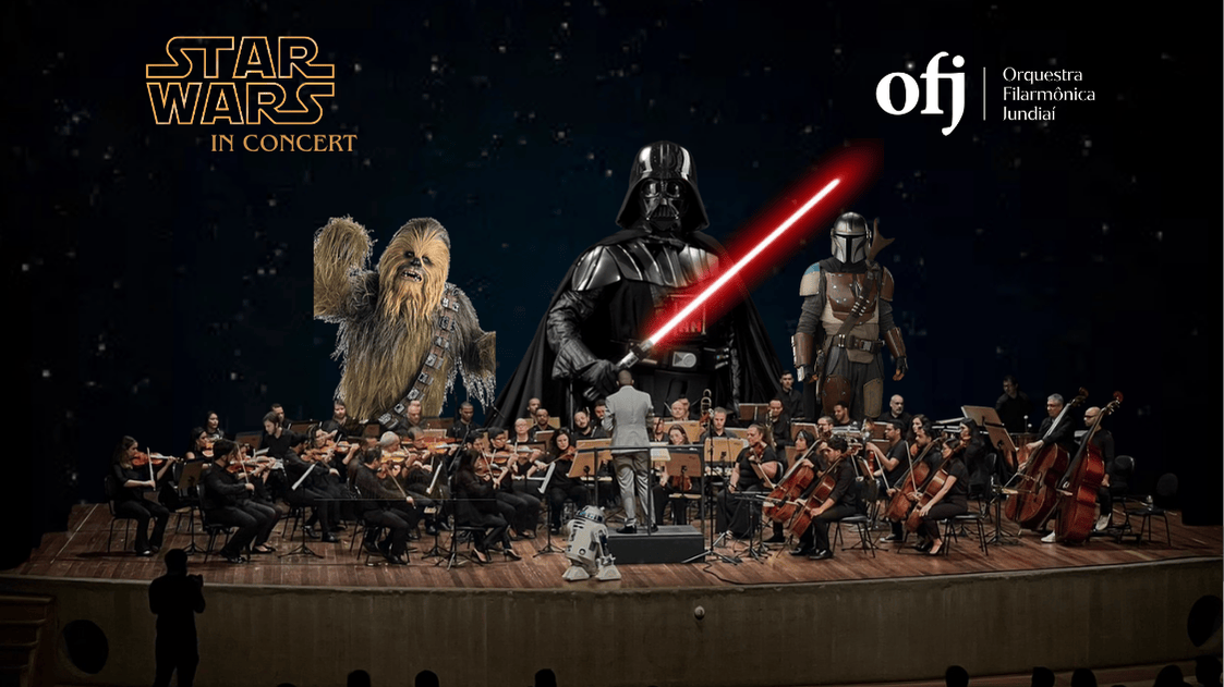 be with you”), o palco do Teatro Polytheama, em Jundiaí, será tomado pela força da música sinfônica com o espetáculo “Star Wars in Concert 3”, apresentado pela Filarmônica Jundiaí. Sob a regência do maestro Misael Simões, o concerto traz ao vivo as trilhas sonoras mais icônicas da saga Star Wars, compostas por John Williams, em uma experiência sonora grandiosa que promete emocionar fãs de todas as gerações. Mais do que um concerto, Star Wars in Concert 3 se consolida como um verdadeiro evento