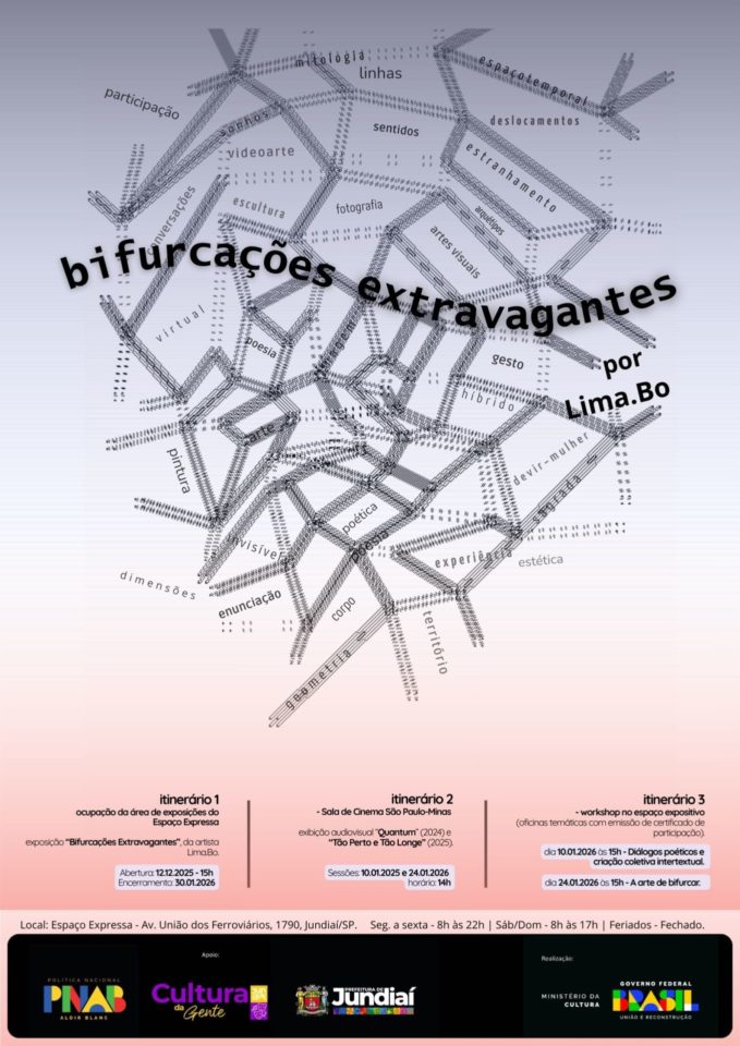 Link original: https://cultura.jundiai.sp.gov.br/agenda-cultural/vernissage-exposicao-bifurcacoes-extravagantes/