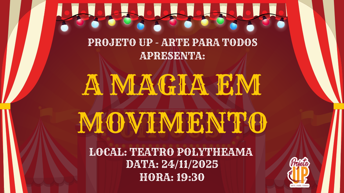 Sinopse: O espetáculo “Magia em Movimento” propõe uma imersão no universo do circo. Misturando tradição e modernidade presentes nessa linguagem artística, como também, dialogando e se reinventando juntamente com outras linguagens. Ademais, a temática vibrante e atual abre caminhos para reflexões pertinentes, acerca da diversidade, superação, resiliência e coletividade.